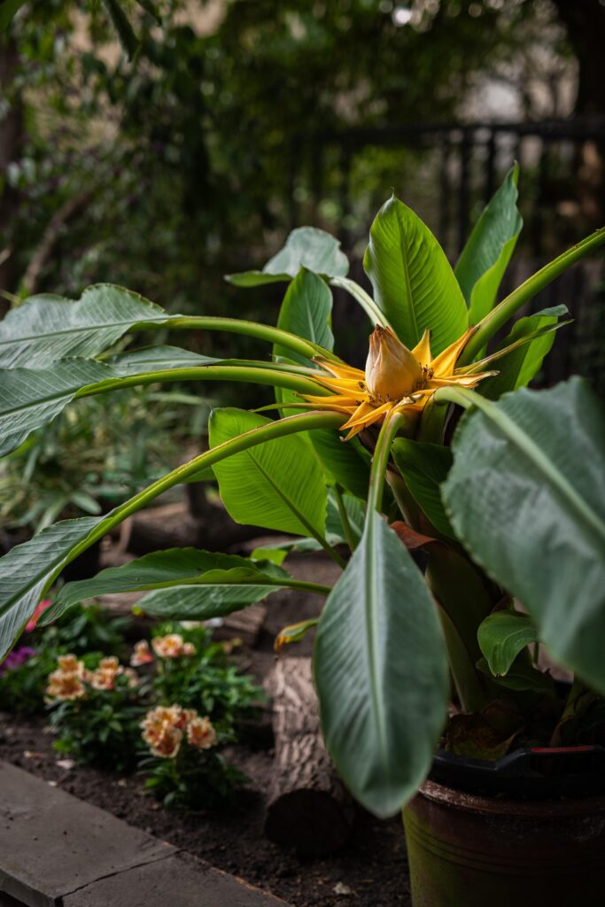 Nieopodal rośnie niezwykłe drzewo kiełbasiane (Kigelia africana), a w wiszących kwietnikach regularnie rozkwitają pachnące storczyki z rodzaju Stanhopea, których zapach potrafi wypełnić całą przestrzeń oranżerii.