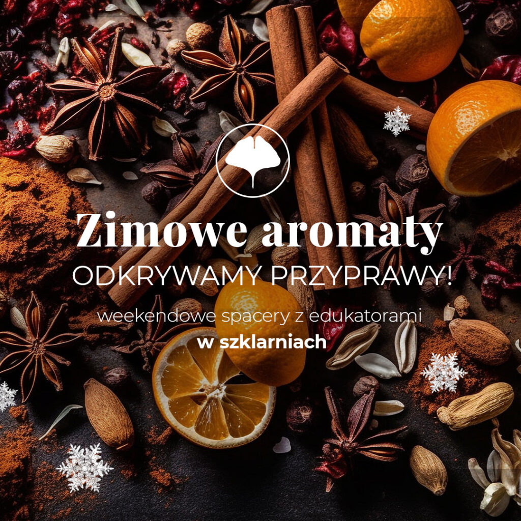 W ogrodowych szklarniach niczym odkrywcy i kupcy przed wiekami będziecie poszukiwać egzotycznych roślin, których woń przywodzi na myśl zimowe wieczory. Dowiecie się czy przyprawy korzenne rzeczywiście powstają z korzeni roślin? Czy rozpoznacie aromaty przypraw, których smak dawniej określano jako “pierny”?