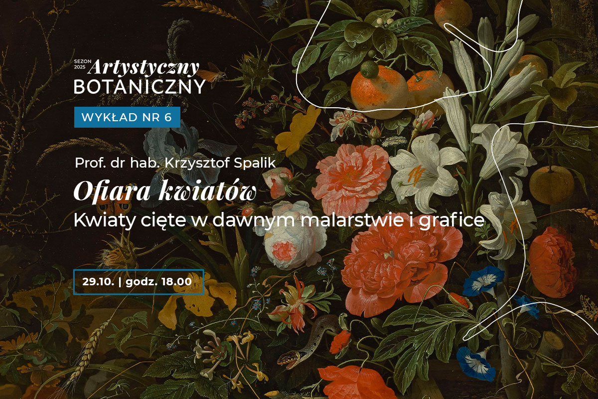 29 października o godz. 18.00 odbędzie się wykład prof. dr. hab. Krzysztofa Spalika – dziekana Wydziału Biologii UW – pt.: 𝗢𝗳𝗶𝗮𝗿𝗮 𝗸𝘄𝗶𝗮𝘁𝗼́𝘄. 𝗞𝘄𝗶𝗮𝘁𝘆 𝗰𝗶𝗲̨𝘁𝗲 𝘄 𝗱𝗮𝘄𝗻𝘆𝗺 𝗺𝗮𝗹𝗮𝗿𝘀𝘁𝘄𝗶𝗲 𝗶 𝗴𝗿𝗮𝗳𝗶𝗰𝗲. Podczas wykładu prof. Krzysztof Spalik opowie o fascynującej obecności kwiatów w sztuce dawnych mistrzów – od niderlandzkich martwych natur XVII wieku po japońskie drzeworyty.